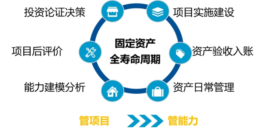 投資經(jīng)營全過程:從固定資產(chǎn)投資項目規(guī)劃、投資決策、項目實施、驗收,到固定資產(chǎn)運營、處置、項目評價全命周期管理。